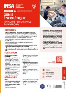 La formation prépare au diplôme d’ingénieur•e de l’INSA Rouen Normandie spécialité génie énergétique. Cette formation en alternance associe les compétences des départements de l’école (Énergétique et Propulsion, Génie Civil et Constructions Durables ainsi que Architectures des Systèmes d’Information). La formation prend en compte l’ensemble des problématiques scientifiques, économiques, environnementales et règlementaires liées à l’efficacité énergétique et à la maîtrise de l’énergie dans la construction, l’urbanisme et l’industrie. Les compétences acquises sont dans les domaines de la gestion, de l’optimisation de l’utilisation rationnelle des énergies dans les bâtiments et les process des entreprises, de la conception et de l’organisation d’entreprises propres et économes en énergie.
