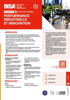La formation performance industrielle et innovation prépare au diplôme de INSA Rouen Normandie, spécialité génie industriel. Elle prend en compte l’ensemble des problématiques scientifiques, économiques, environnementales et règlementaires liées à l’amélioration ou à la conception de systèmes à dominante mécanique, à une démarche d’innovation et d’export ainsi qu’au déploiement de méthodes d’industrialisation adaptées aux critères : Coûts – Délais – Qualité. Les compétences acquises dans les domaines du pilotage de projets de R&D pluridisciplinaires, du management de l’innovation et de la conduite d’un système de production contribuent à répondre à l’optimisation industrielle de l’entreprise et à sa performance.